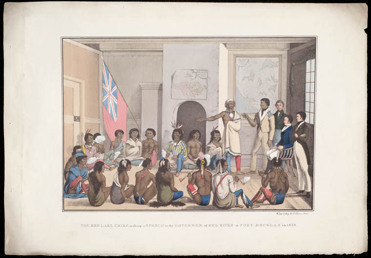The Red Lake Chief making a Speech to the Governor of Red River at Fort Douglas, Peter Rindisbacher, 1825. Source: Library and Archives Canada.