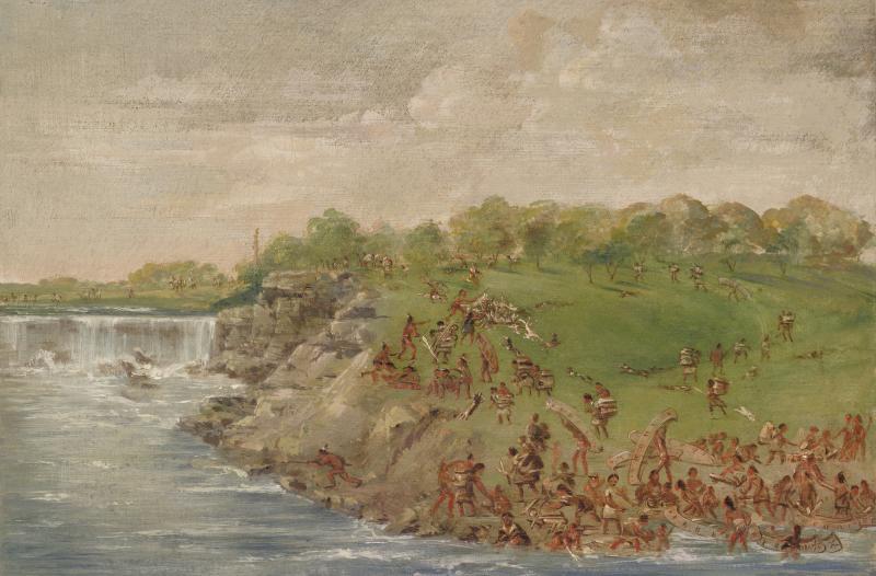 "Ojibwa Portaging Around the Falls of St. Anthony," oil on canvas by George Catlin, 1835–1836. Courtesy of the Smithsonian American Art Museum.