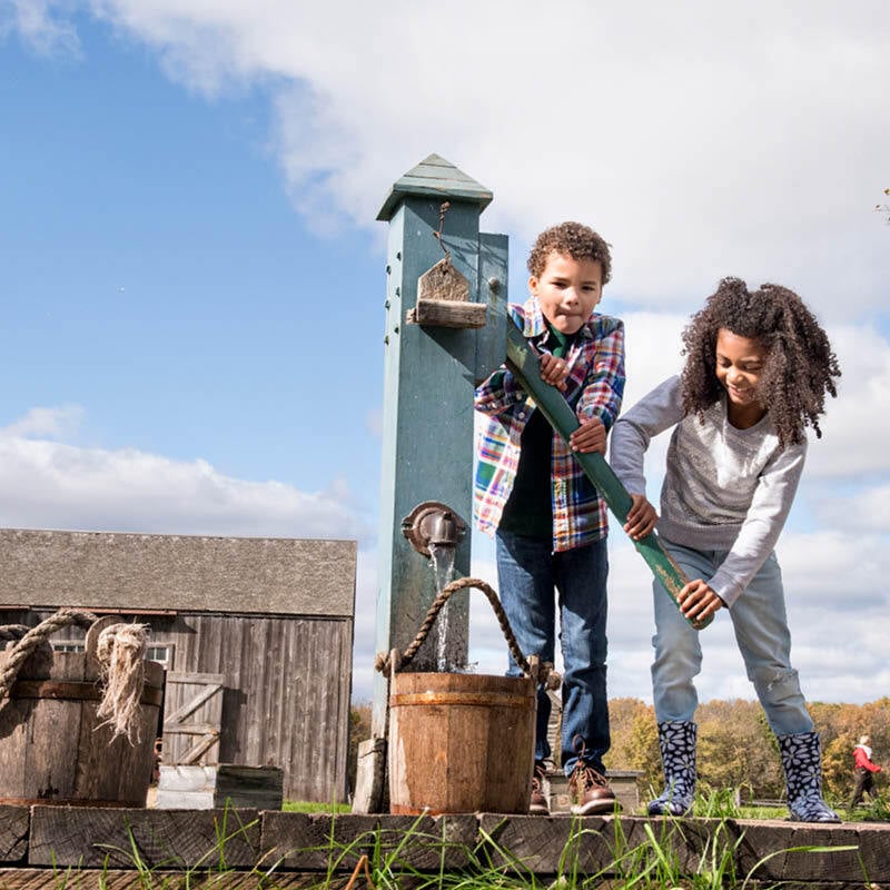Try your hand at pumping water and hauling it to wherever it’s needed on the farm. Located in the center of the farmyard, the pump serves both the house and barn. Kelley told of digging two wells on his farm in the 1850s while many farm families still collected water from rivers and streams.