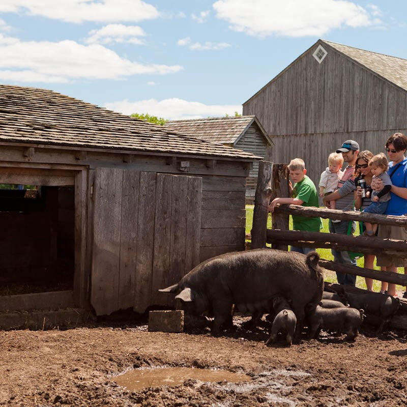 In these plan-book sheds and pens you’ll find Duroc hogs and Southdown sheep, both common 19th-century breeds. Participate in the animal care chores that families like the Kelleys did every day.