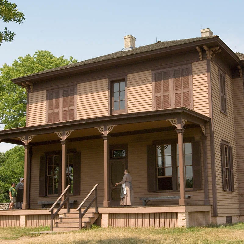 Go inside this large Italianate-style house and help with household chores, from sewing to preparing a 19th century meal. This is the second Kelley home, built in 1876 on the foundations of the first house and completed after the Kelleys sold the farm.