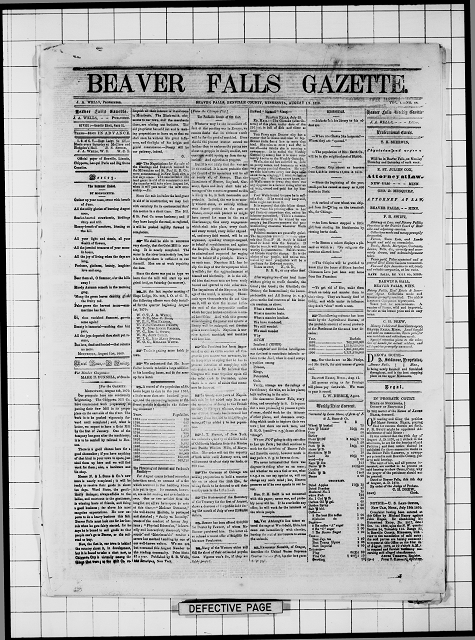 Beaver Falls gazette (Beaver Falls, Minn.) 1870 Browse the title